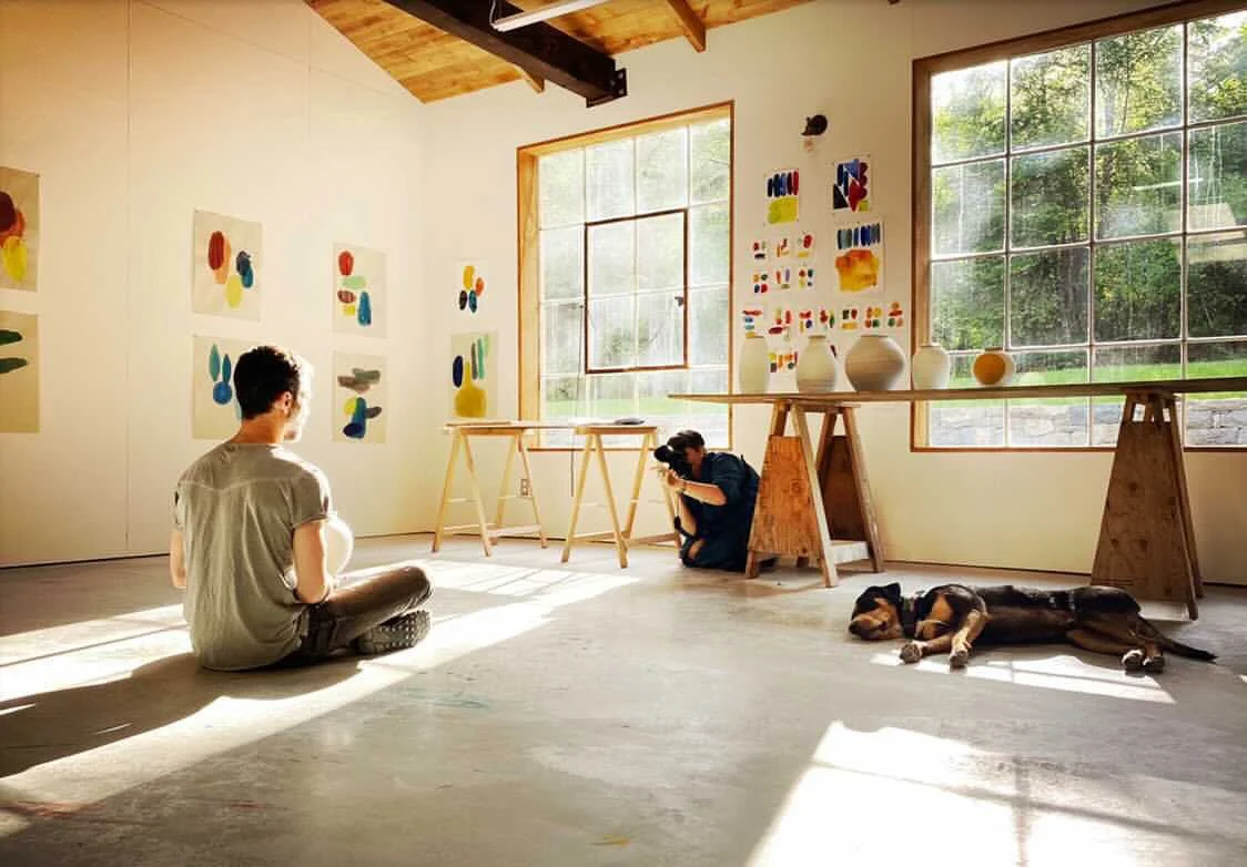The photo of me on the left is from an exhibition I had, made by Johann Wall, and the photo below is by Zuzanah Marchandise, while visiting the studio she shares with her husband, David.